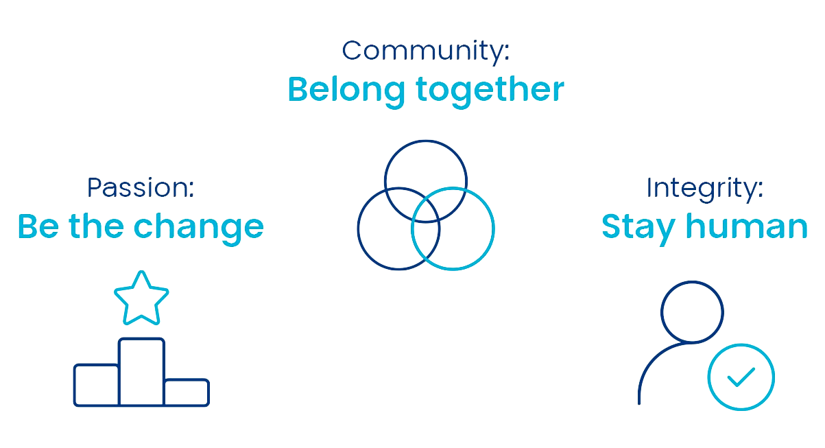 • Valores: Nuestros valores guían nuestras interacciones, definen nuestras creencias y representan nuestra dedicación a principios comunes, para que podamos trabajar juntos a través de fronteras.